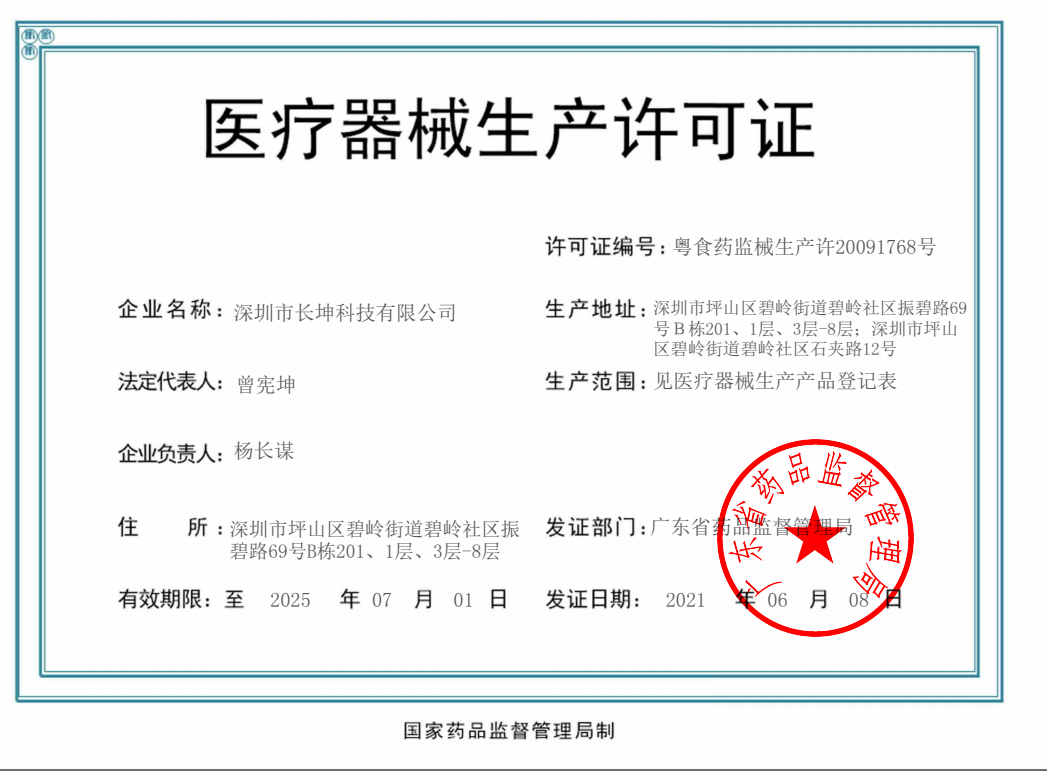 中文版|ENGLISH 服務(wù)熱線:0755-29100487 歡迎來到深圳市長坤科技有限公司官網(wǎng)!      粵深食藥監(jiān)械經(jīng)營備20151166號(hào)      粵食藥監(jiān)械生產(chǎn)許20091768號(hào)